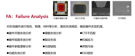 | 器件失效分析相关检测范围